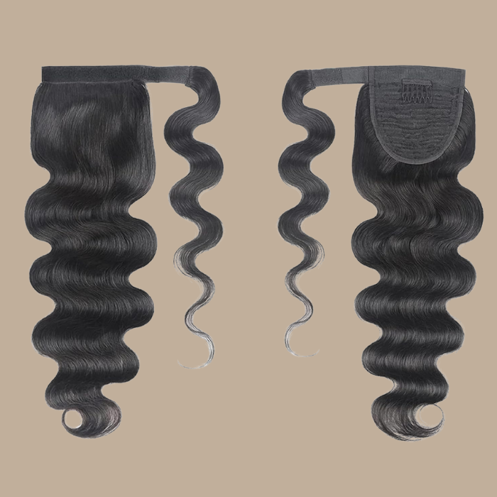 Hästsvans mörkbrunt magiskt band Remy Hair Body Wave