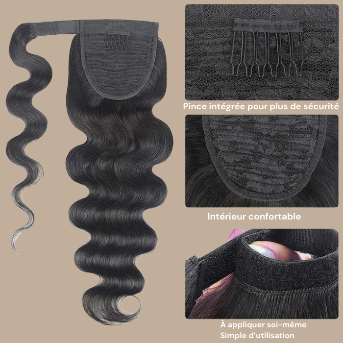 Sublimera din look med hästsvansen, den perfekta lösningen för dig som drömmer om en elegant, sofistikerad frisyr på bara några ögonblick. Magin sker med vårt omslutande fästsystem som garanterar snabb och enkel installation. Förvandla din look enkelt och elegant.